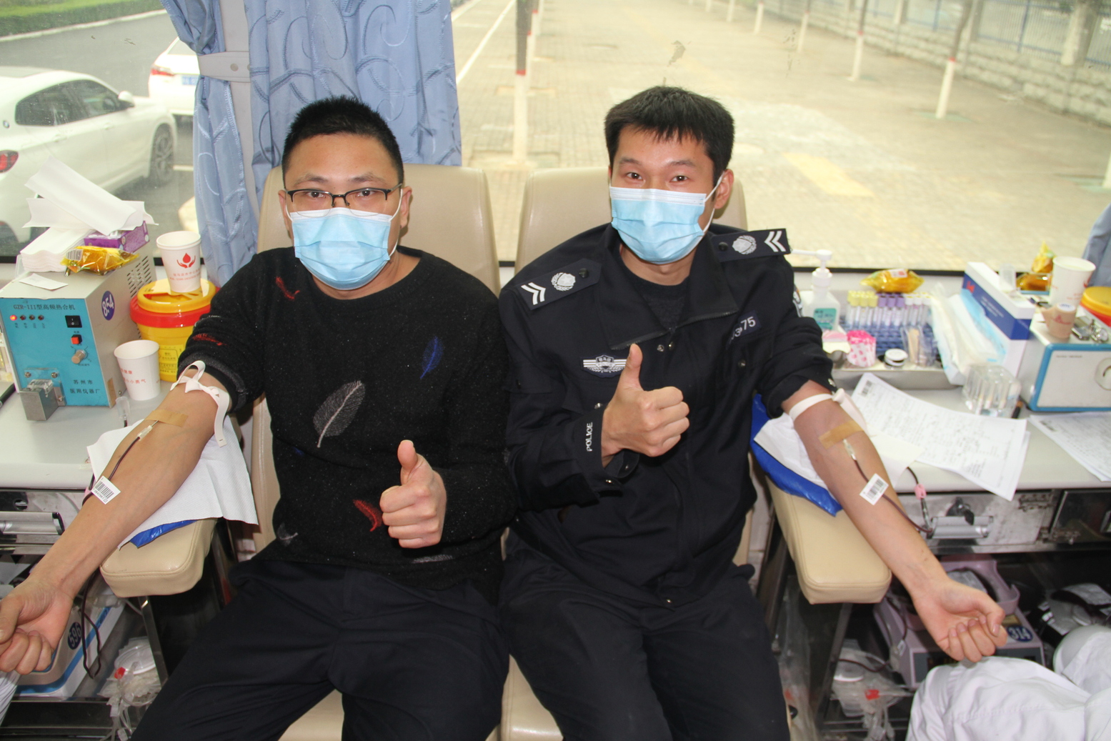 虽然天气寒冷,但献血车内热情高涨,有连续多年无偿献血的“老兵”,也有初次上阵的“新兵”,在医务人员的指导下,有条不紊地完成填表登记、测量血压、血型检验、信息录入、血样采集等工作,顺利完成了无偿献血活动。