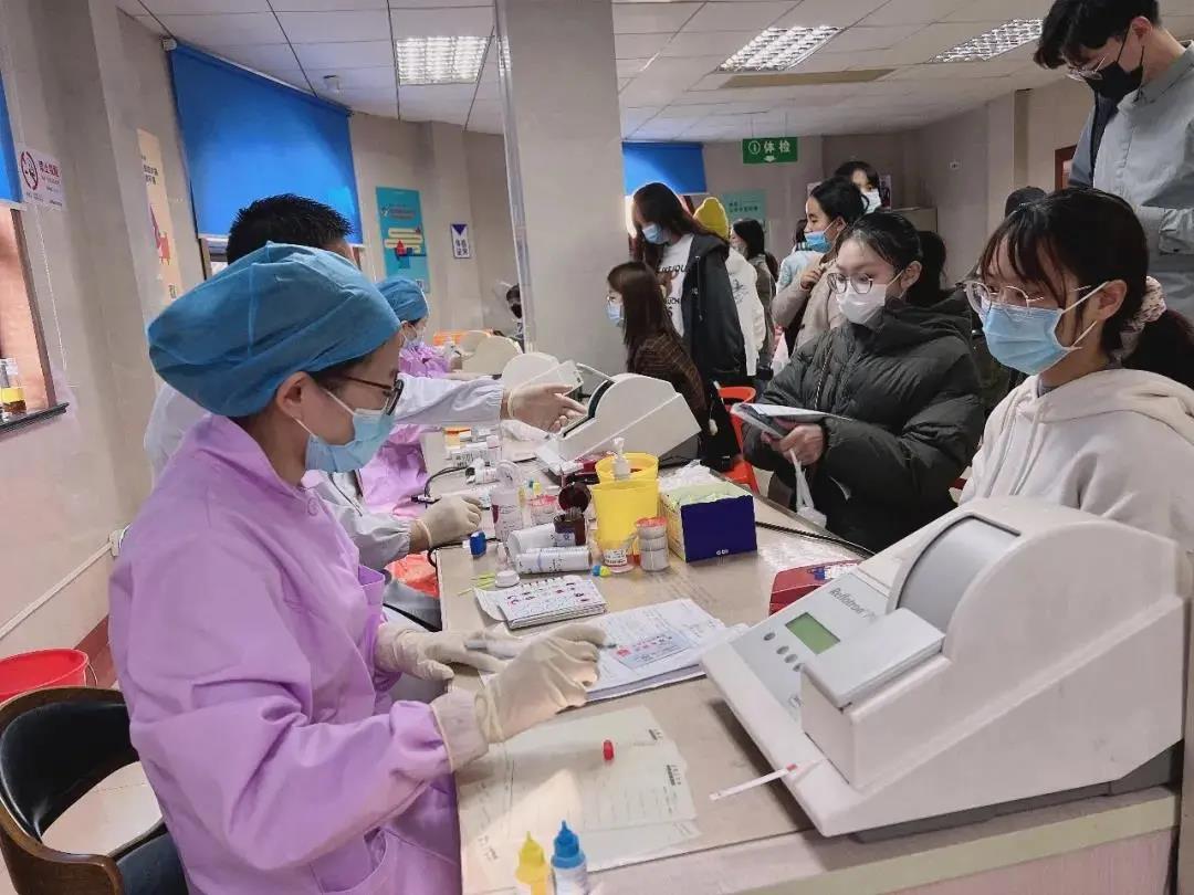 早上八点,前来无偿献血的同学们都严格按照疫情防控要求,佩戴口罩,经过测量体温、手部卫生消毒、健康征询、健康码行程卡检查等环节,活动场所也通过实行“一进一出”单循环方式减少人群聚集,错峰错时安全无偿献血,保障了血液的安全。