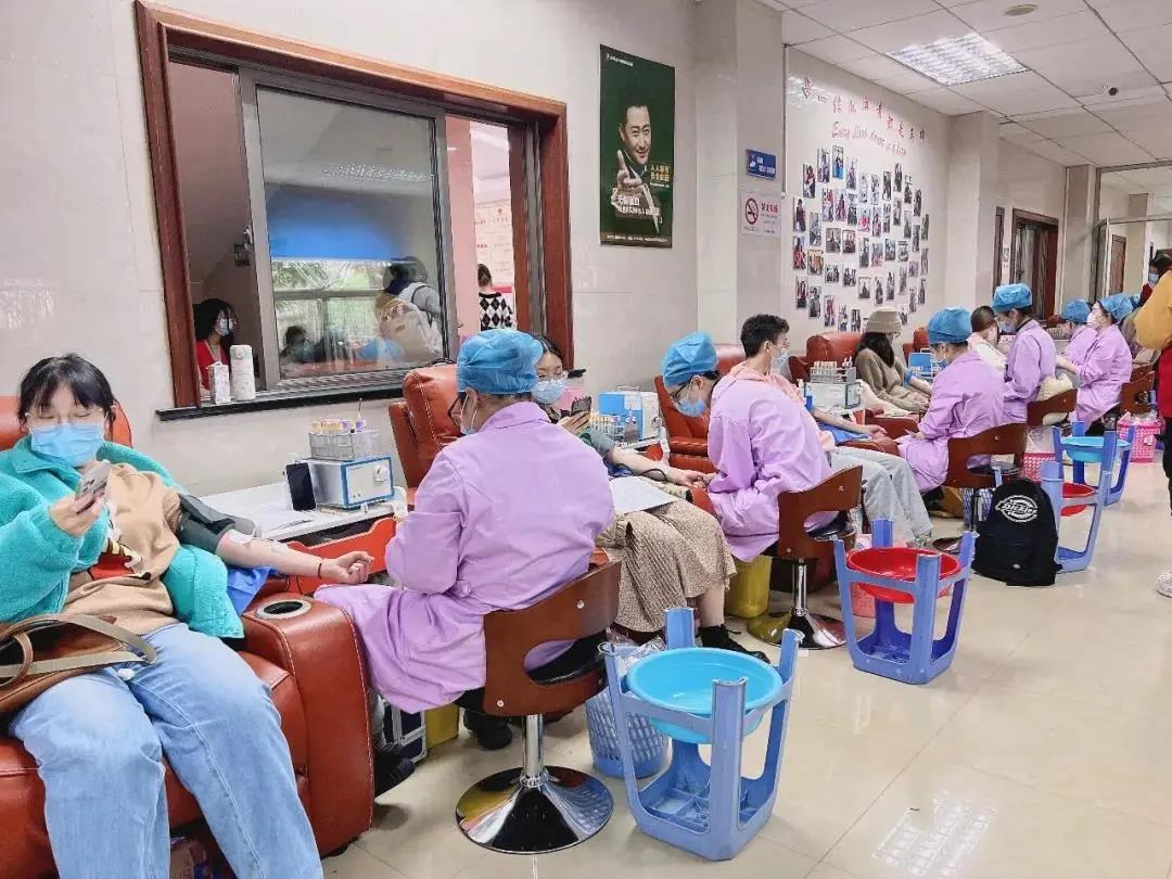 无偿献血志愿者们撸起袖子、展开臂膀,拳头一展一握间,温热的鲜血流入采血袋中,传递着每一位无偿献血者的爱心。