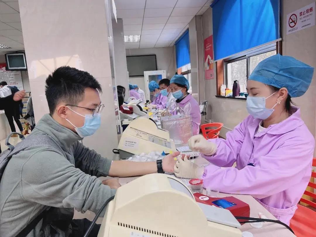 他们在志愿者的引导下有条不紊地完成健康征询、测血压、血液初筛、验证、无偿献血等步骤。