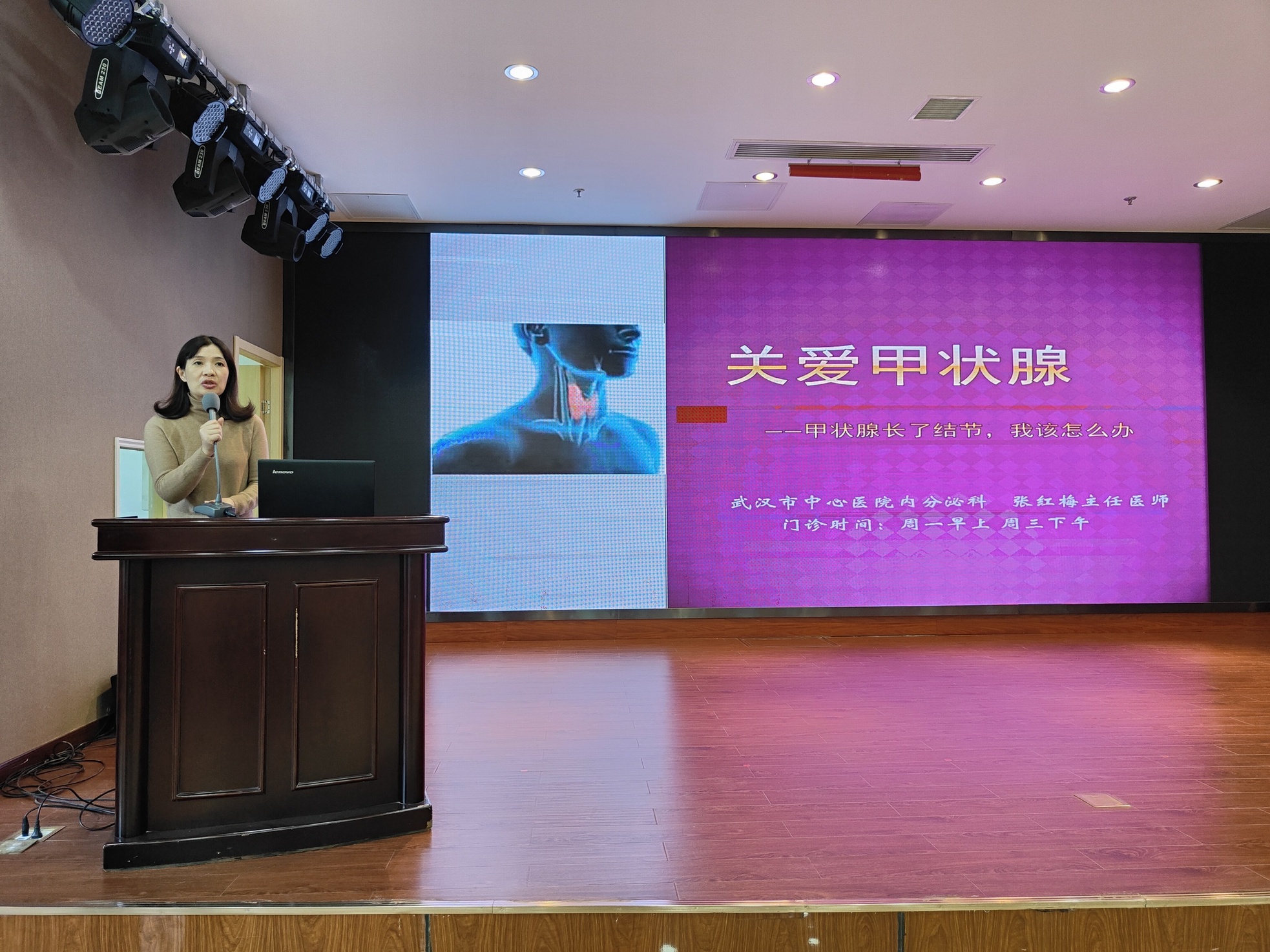 武汉市中心医院内分泌科专家张红梅主任带来科普讲座“关爱甲状腺”(肖莉娇摄)