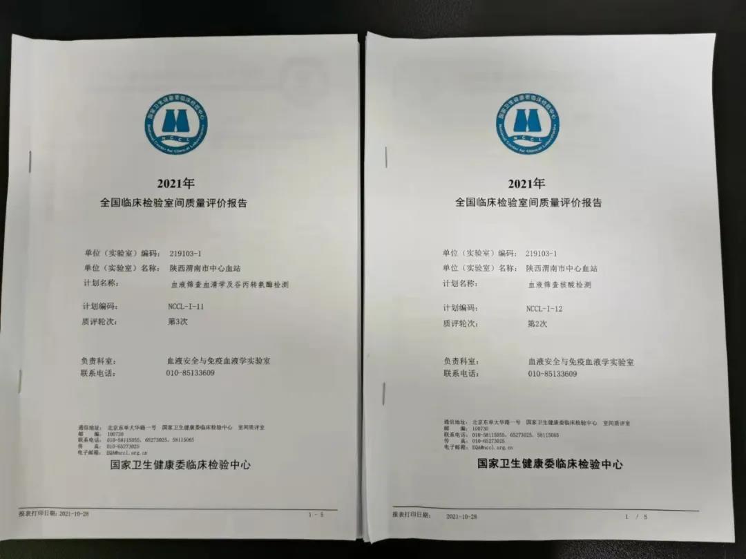 渭南血站完成了国家卫建委临检中心全年常规实验血型2次、ALT及酶免四项3次、病毒核酸实验2次以及输血相容性ABO血型、RhD血型、抗体筛查、交叉配血3次共16个项目42项次的室间质量评价活动,实验室凭借过硬的技术实力和优秀的质量管理水平获得全年国家卫健委临检中心开展的室间质评满分的优异成绩。