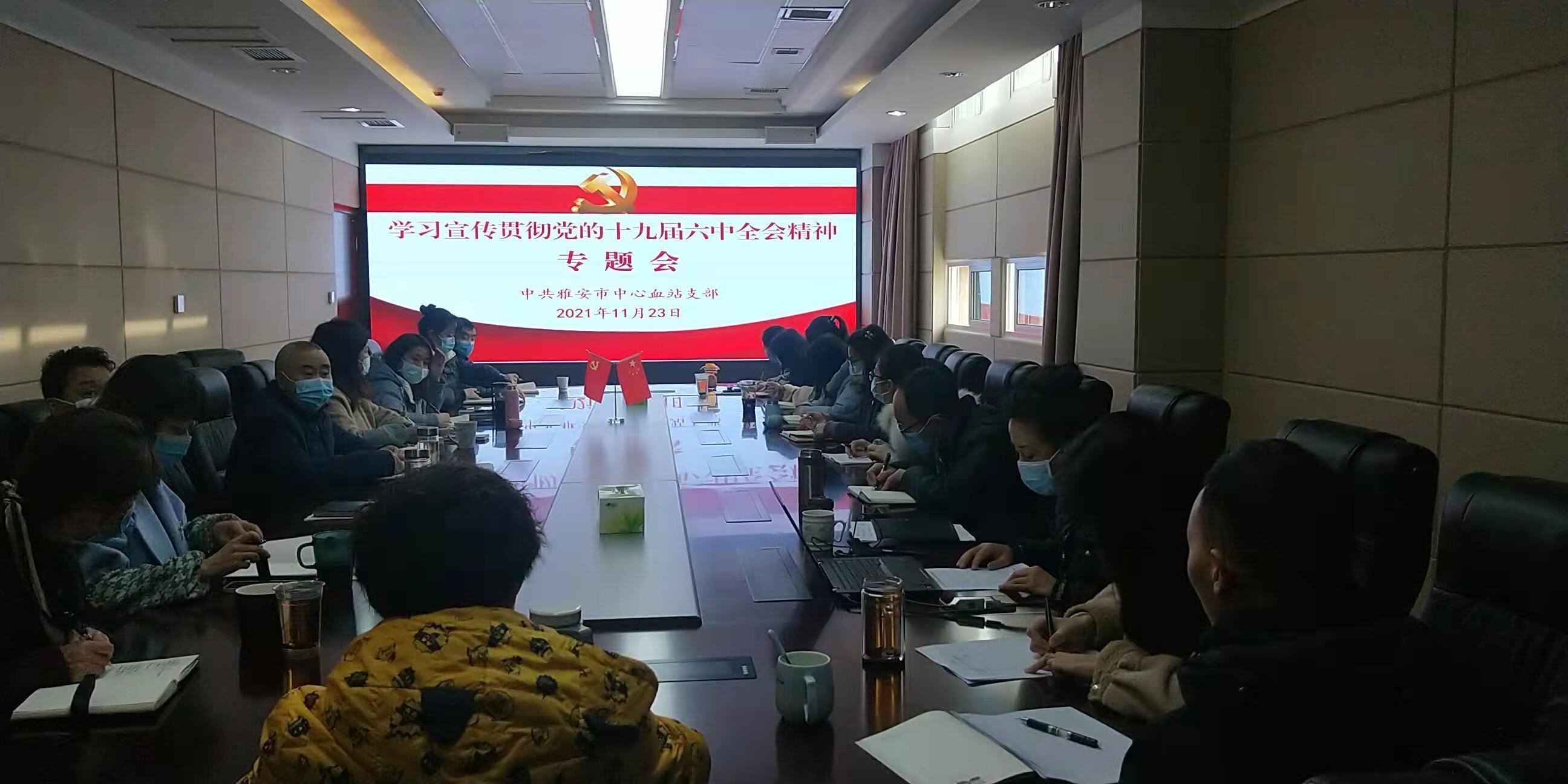 11月23日上午,雅安市中心血站党支部召开学习宣传贯彻党的十九届六中全会精神专题会,站党支部书记喻琼主持会议,全体党员、入党积极分子、干部职工参会。