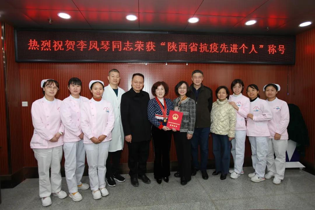 中国共产党陕西省委员会,陕西省人民政府授予陕西省血液中心李凤琴同志“陕西省抗击新冠肺炎疫情先进个人”荣誉称号。11月22日上午,中心领导班子为李凤琴同志颁发证书和奖牌。李恒新主任在颁奖时说:“这个荣誉不单单是李凤琴同志个人的荣誉,也是陕西省血液中心的光荣,更是省委省政府对全省采供血系统在抗击新冠肺炎疫情工作中所做成绩的肯定和赞扬!”