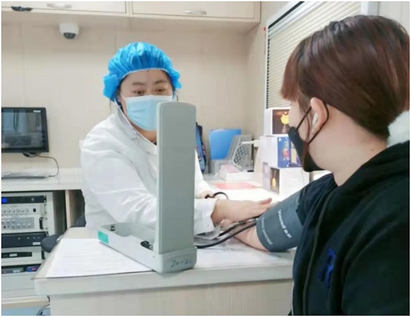 2020年5月宝坻疫情后恢复采血,她们首当其冲,天还未亮就下乡镇采血,宝坻街头到处留下她们忙碌的身影。按照各项防疫要求,她们巧妙布局,在献血车狭窄的空间内,给冒着烈日前来的献血者提供舒适环境,采血过程顺畅完成。疫情期间,很多献血者仍有安全疑虑。曾献血6次的张先生在得知因新冠疫情全市用血紧张,第一时间来到宝坻献血车,但内心矛盾不敢上前。她们第一时间发现,对张先生一一讲解疫情期间献血要求和消毒措施,打消焦虑。舒心的话语,周到的服务更是让张先生对这次献血过程特别满意。当刚刚结束一天无比忙碌的工作时,她们看到张先生拿着一大袋水果和饮用水气喘吁吁赶到采血车,对全组医护人员的敬业精神表示感谢。她们眼眶湿润了,身上的疲乏消失了,得到献血者认可与肯定是对她们的最大奖励。虽然因疫情影响宝坻献血车停采3个月,但采血量不仅没有减少,反而比去年同期增加35%,这样的成绩是车组每个人共同努力的结果。
