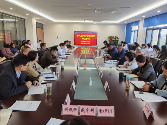 11月26日,合肥市中心血站召开党委中心组理论学习(扩大)会议,认真传达学习党的十九届六中全会精神,研究贯彻落实思路举措。血站党委书记、站长胡晓玉主持会议。血站党委班子成员,中层以上干部参加了会议。
