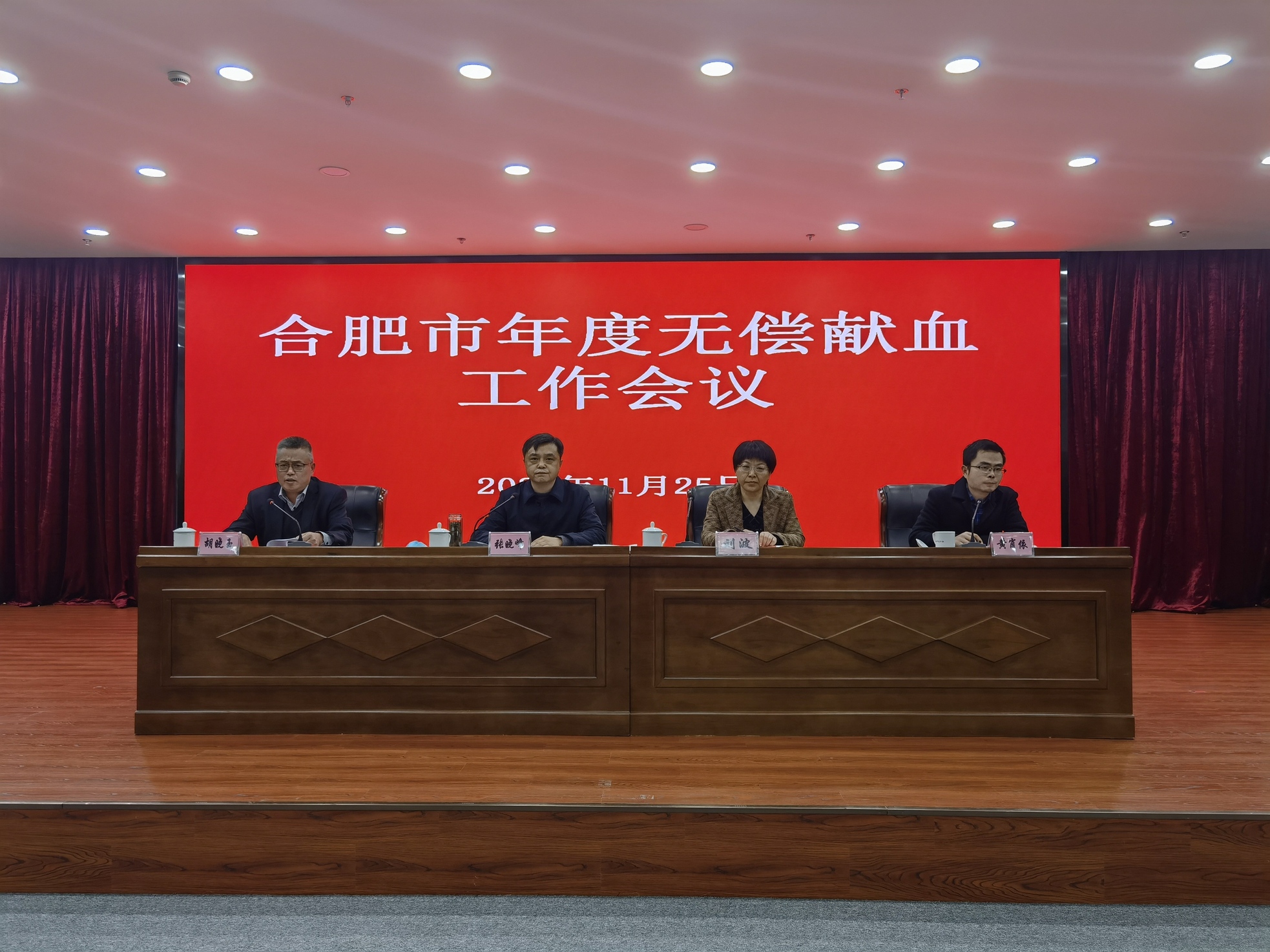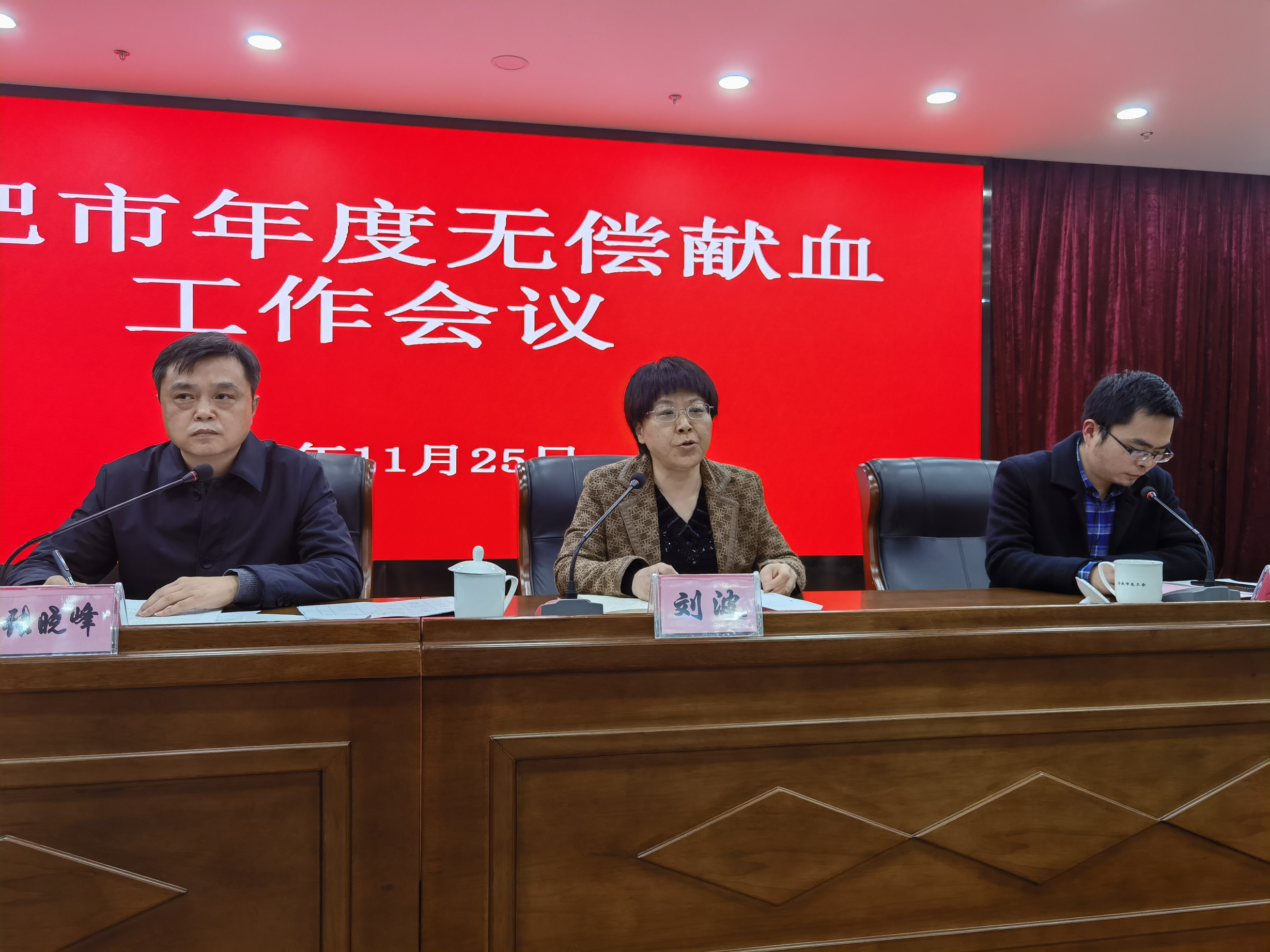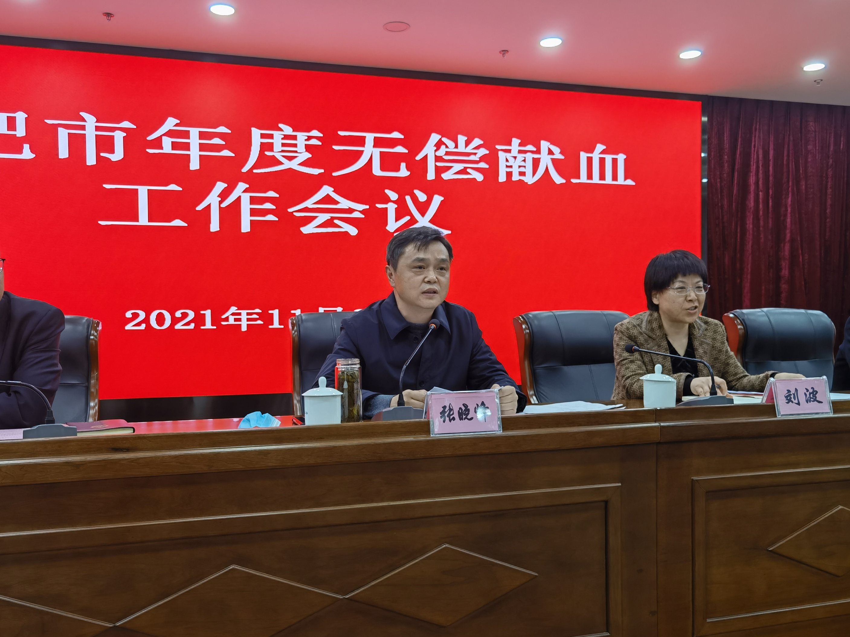 2021年11月末,合肥市卫健委召开合肥市年度无偿献血工作会议。市卫健委副书记、副主任张晓峰,省红十字会挂职副会长、市红十字会专职副会长刘波,市中心血站党委书记、站长胡晓玉,各县(市)区卫健委、开发区社会事业(发展)局、各县(市)红十字会分管领导共计30余人参加了会议。