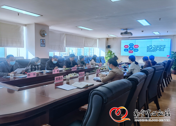 此次调研工作采取座谈会议形式开展。座谈会上,南宁中心血站站长、党委副书记余梅对自治区卫生健康委调研组的到来表示欢迎,感谢调研组对南宁市无偿献血工作的关心与支持,并以《南宁中心血站采供血工作汇报》为主题,就南宁中心血站的基本概况、无偿献血网络建设等采供血工作情况及存在问题和建议做工作汇报。