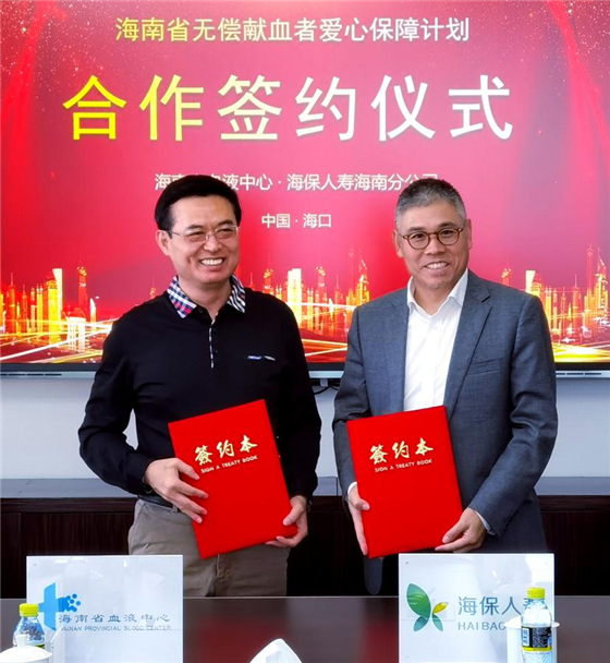 11月30日上午,海南省血液中心携手海保人寿在海保人寿总部会议室,隆重举办了以“奉献不止步,爱心不停歇”为主题的《海南省无偿献血者爱心保障计划》合作签约仪式。