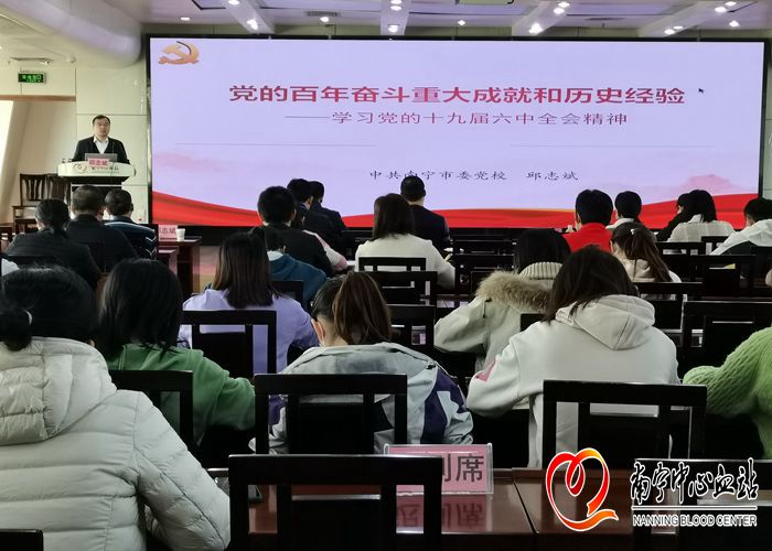 为深入学习贯彻党的十九届六中全会精神及自治区第十二次党代会精神,推动党史学习教育走实走深,激发党员干部队伍的凝聚力、向心力,12月3日,南宁中心血站在16楼会议室召开党的十九届六中全会精神及自治区第十二次党代会精神专题学习会。学习会邀请到南宁市委党校党史党建教研部副主任、党内法规研究中心副主任邱志斌进行授课,南宁中心血站党委书记、副站长梁立阳作会上主持,全站干部职工参加。
