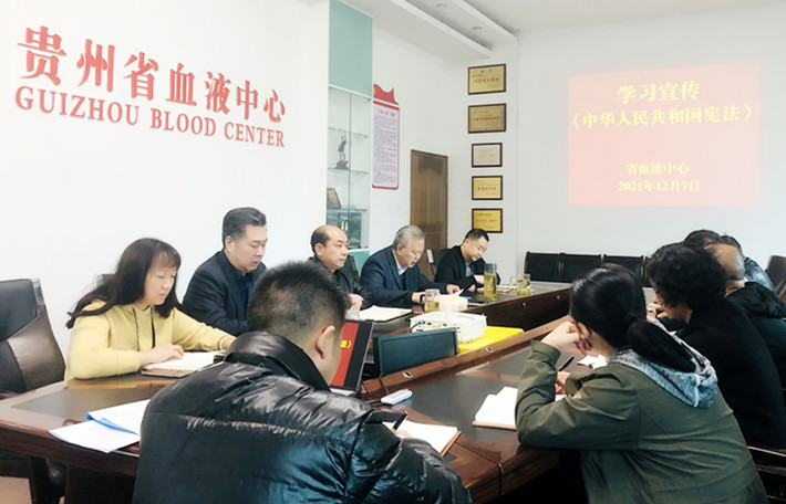 今年的活动主题为“以习近平法治思想为指引 坚定不移走中国特色社会义法治道路”。活动中,省血液中心通过召开党委扩大会组织集中学习、面对面宣讲宪法,借助微信公众号平台积极推送宣传宪法文章,各党支部、各科室充分利用“三会一课”、主题党日、科室例会等形式,紧紧围绕正在开展的党的十九届六中全会和省委十二届十次全会精神学习宣讲,紧密结合党史学习教育和普法工作,结合采供血工作实际,认真组织党员干部职工学习宪法、宣传宪法,深入学习习近平法治思想,在中心内形成全民学法、懂法、用法的良好氛围,弘扬宪法精神,维护宪法权威,推动宪法全面实施。