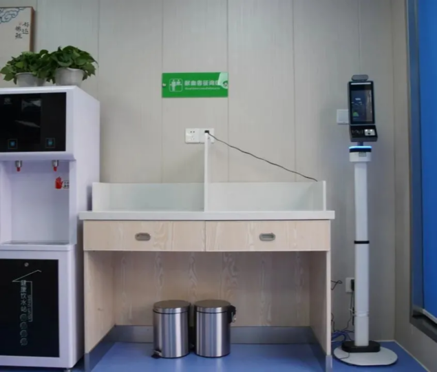 新桥爱心献血屋更人性化、现代化,门口的智能机器人可以为市民科普血液的知识、无偿献血的重要意义和无偿献血前后的注意事项等,带来不一样的互动体验。