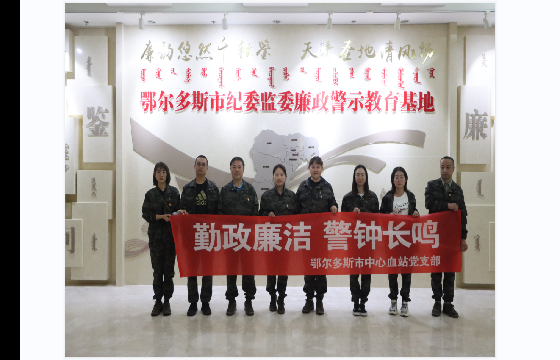 为深入贯彻党的十九大精神,将党史学习教育走深走实,进一步提高党员干部党风廉政和廉洁自律意识,筑牢反腐思想道德防线。鄂尔多斯市中心血站全体党员干部来到伊金霍洛旗警示教育基地开展廉政教育主题党日活动。