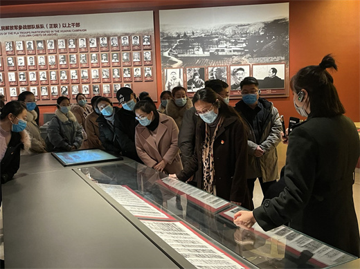 经过改造后的淮海战役纪念馆,增加科技展项40余处,还新增了和历史内容相结合的艺术场景。馆内,一件件实物、一张张图片、一个个场景,通过讲解员“沉浸式讲解”,再现了那场会师淮海、决战中原的大战。4年前,习近平总书记参观淮海战役纪念馆时指出,淮海战役就是小推车推出来的胜利。我们要好好回报人民,让人民过上幸福美好的生活。今天,党员们身临其境地体验了那段艰难而光辉的历程,更加感受到革命先烈们忠于信仰的风范、守纪如铁的作风以及决战决胜的精神,感受到党和人民群众的血肉亲情和党全心全意为人民服务的优良传统,被先烈们献身革命事业的精神所深深地鼓舞和激励。