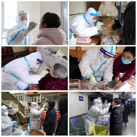 在石家庄市开展全员核酸检测任务中,第六党支部选派10名同志组建核酸检测医疗队伍,在社区的安排下,上门入户为社区居民采集咽拭子标本,不畏风险,不惧严寒,克服种种困难,总计采集标本10046份,高质量完成了核酸检测任务,得到了好评,也收到了社区群众对血液中心工作人员的认可和感谢。党员的率先垂范和躬身践行精神,深深影响着科室的其他普通职工,在居家隔离期间,多名同志在做好自身防护前提下,主动参加所在社区街道的疫情防控和居民服务工作,以另一种形式彰显了冀血人的社会担当。