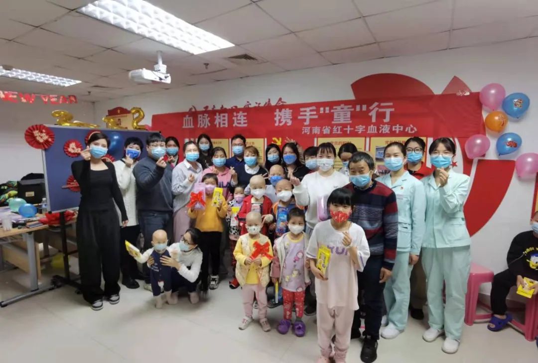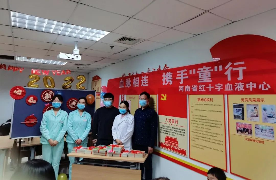 2022年1月1日,在新年来临之际,为关爱白血病患儿,普及无偿献血知识,河南省红十字血液中心联合河南省儿童医院血液肿瘤科共同开展了“血脉相连、携手童行”迎新年白血病儿童关爱行动。