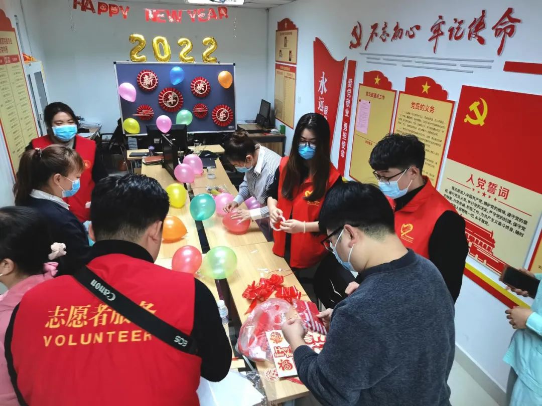 当天下午,省血液中心采血二科党支部的党员、团员同志们,在副科长王中立同志和副书记张燕同志的带领下,与中心团委书记秦畅同志一起,早早的来到了河南省儿童医院血液肿瘤科的病区内。郑州轻工业大学政法学院“青心”护童志愿服务队的两名大学生志愿者也参加了本次活动,他们与血液中心的工作人员一起精心打造出喜气洋洋的活动场地,让小朋友们深深感受到新年的快乐氛围。