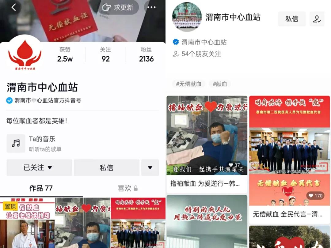 为更好地服务于献血者和用血者,让广大群众看到“不一样”的无偿献血,相继开通了渭南市中心血站官方抖音号及视频号。自开通以来,共发布抖音及视频号作品 78个,浏览量425.9万次。