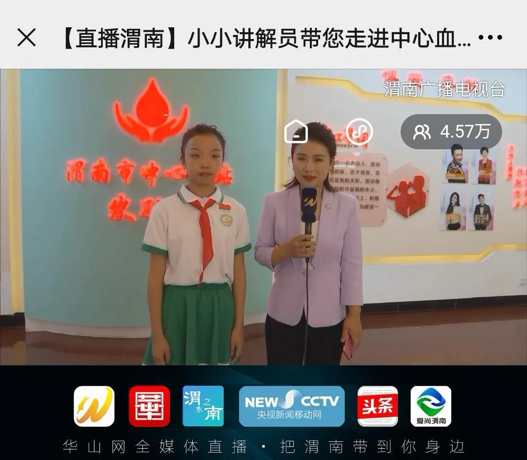 6月5日,渭南血站联合渭南广播电视台组织开展“我心向党献热血”小小讲解员带您走进血站,了解一袋血的历程直播活动,活动旨在提升广大市民对无偿献血知识普及率和参加无偿献血的积极性,形成全社会广泛支持参与无偿献血的良好社会氛围。