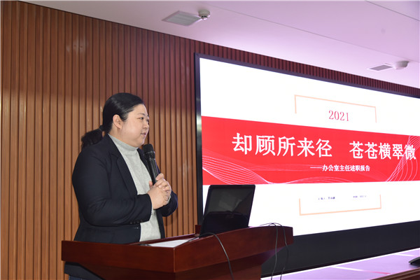 会上,14名科室及部门负责人采用PPT形式,图文并茂地举实例、列数据、做对比,逐一对2021年度个人德能勤绩廉及科内管理情况进行全面总结,既汇报了成绩,也深刻剖析了不足,同时提出了下一步工作打算。