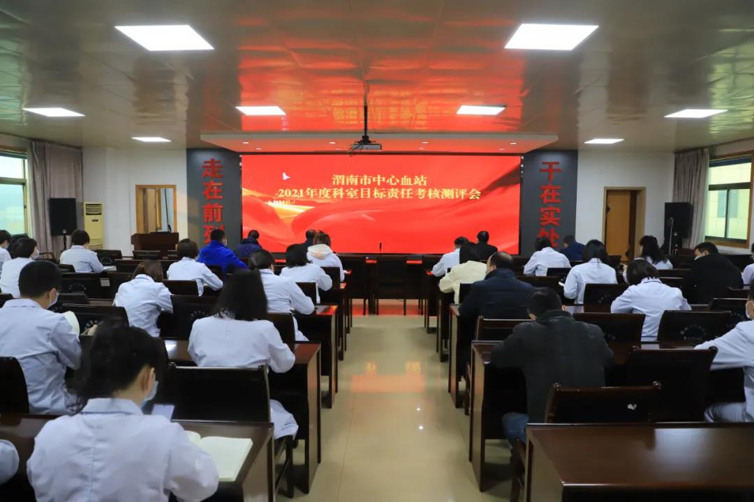 1月18日上午,渭南市中心血站2021年度科室目标责任考核测评会在五楼会议室召开,会议严格按照疫情防控要求召开,会议由吴剑副站长主持,血站领导班子成员、各科负责人、质量监督员及科室职工代表50人参加会议。