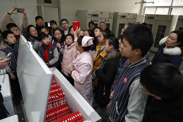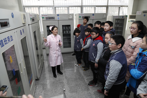 3月10日上午,淮安市实验小学六年级8班的20多名小学生在家长的陪同下,来到市中心血站探寻血液的奥秘。