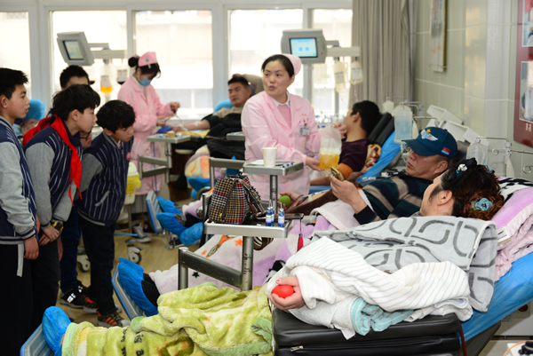 学生家长赵芮说: “我觉得献血对我们人体还是有益处的,通过献血让我们血液得到一个新一轮循环,献血不但能降低血脂,还能提高造血功能,我会定期参加无偿献血的。”