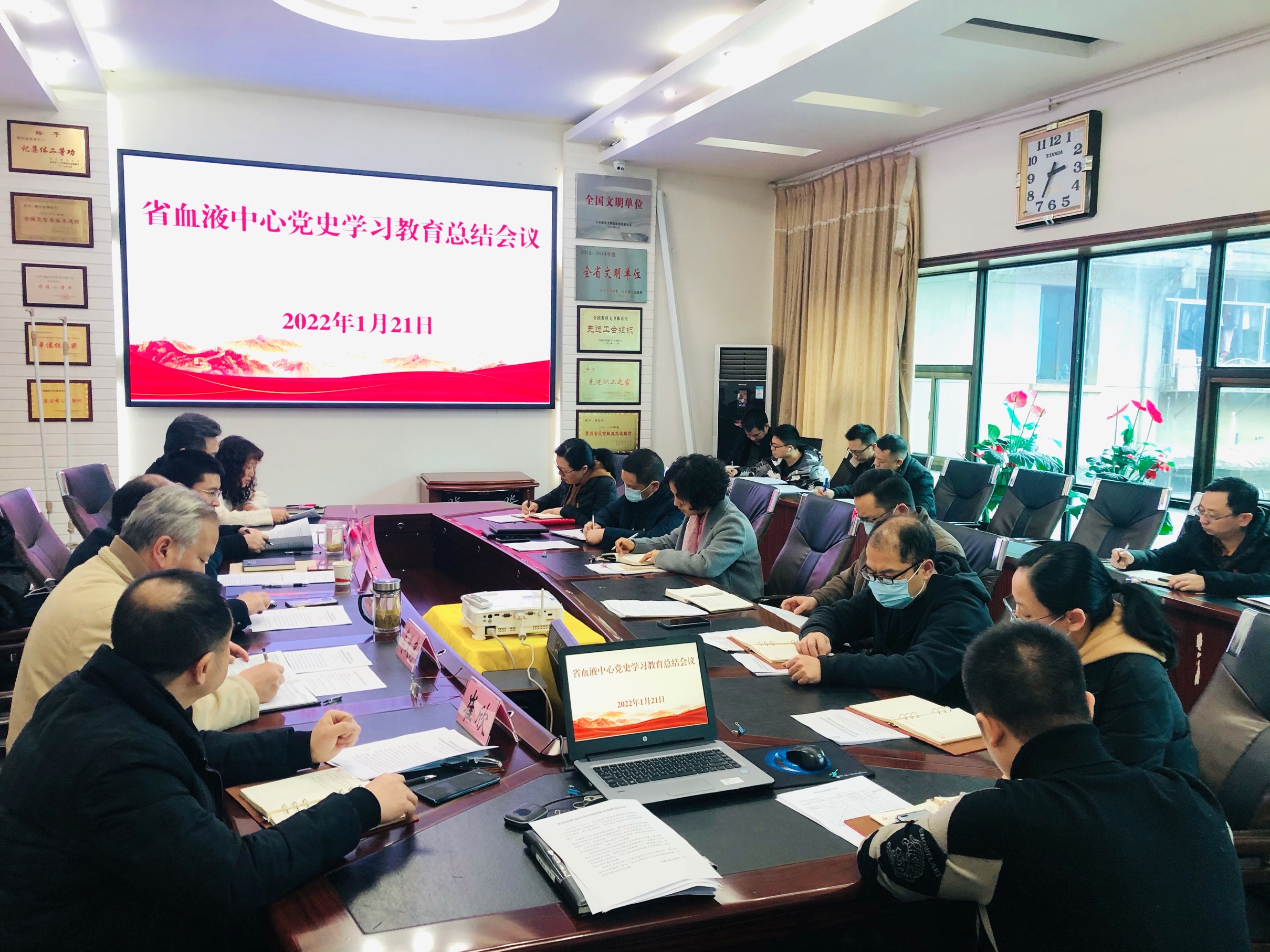 1月21日,贵州省血液中心召开党史学习教育总结会议。委党史学习教育巡回指导组张涪培到会指导并讲话,省血液中心党委书记朱思刚对中心党史学习教育作总结讲话,中心党委委员、副主任马懿主持会议。