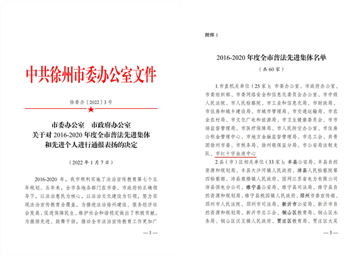 近日,徐州市委办公室、市政府办公室联合下发《关于对2016-2020年度全市普法工作先进集体和先进个人进行通报表扬的决定》,对“七五”普法中成绩突出的先进集体和个人予以表彰。徐州市红十字中心血站荣获“2016-2020年全市普法工作先进集体”称号。