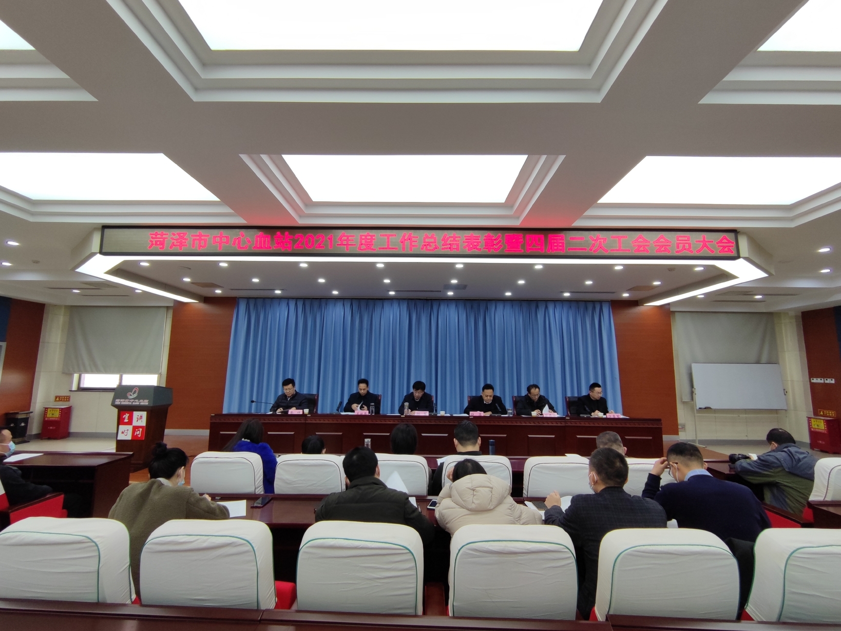 1月24日下午,菏泽市中心血站召开2021年度工作总结表彰暨四届二次工会会员大会。菏泽市卫生健康委党组副书记、副主任杨军出席大会并讲话,菏泽市中心血站站长巨昆做2021年度工作报告,血站工会主席张勇军做工会委员会工作报告。血站副站长张西雪、李伟分别宣读了表彰决定,对2021年度评选出的先进科室、模范党员、模范干部、先进工作者进行了表彰,副站长姜林恩主持大会。