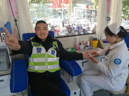 除了积极主动的参加献血活动,薛警官也经常利用空闲时间到献血车上为工作人员提供一些帮助,在献血者较多时还会指导他们填写无偿献血记录表和测量血压。更令人感动的是,在薛警官的带动下,泉山交警大队有多名民警和辅警也加入了献血队伍,为无偿献血工作奉献出了一份爱心。这种行为充分展现了徐州交警队伍热心公益活动、关爱他人、乐于奉献的优良品质和传统美德。