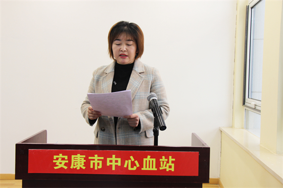 站党支部书记、站长周元鸿代表站领导班子向获得表彰的先进个人和集体表示热烈的祝贺。他指出,2021年在市卫健委的正确领导下,血站坚持以“智慧兴站、质量强站、从严治站、文化立站”为发展方针,认真落实新时代党的建设总要求和党的组织路线,扎实开展党史学习教育,圆满完成了全年目标工作和北京、西安、汉中等地血液支援任务。无偿献血人数、采血量再创历史新高,安康市“热血奉献•温暖冬季”无偿献血公益活动成功举办,市委书记赵俊民带领市七大班子成员第四次“组团”献血,助推无偿献血工作的健康可持续发展,“去白细胞混合浓缩血小板”和造血干细胞血样采集新业务成功开展,无偿献血实现了乡镇全覆盖,企业团体献血队伍不断扩大,薪酬制度改革圆满成功,内设机构规格提升,资金争取、项目建设、智慧血站建设等中心工作成效显著。他要求,全站职工在2022年的工作中要鼓足干劲、努力拼搏,发扬成绩,克服不足,要更加忠诚和热爱无偿献血事业,要更加练好和学好过硬本领,要更加增强创新和服务意识,要更加提高遵纪守法和团结协作的自觉性,在站党支部的坚强领导下,不断开拓创新,锐意进取,奋发图强,再创佳绩,为采供血事业的发展贡献力量。