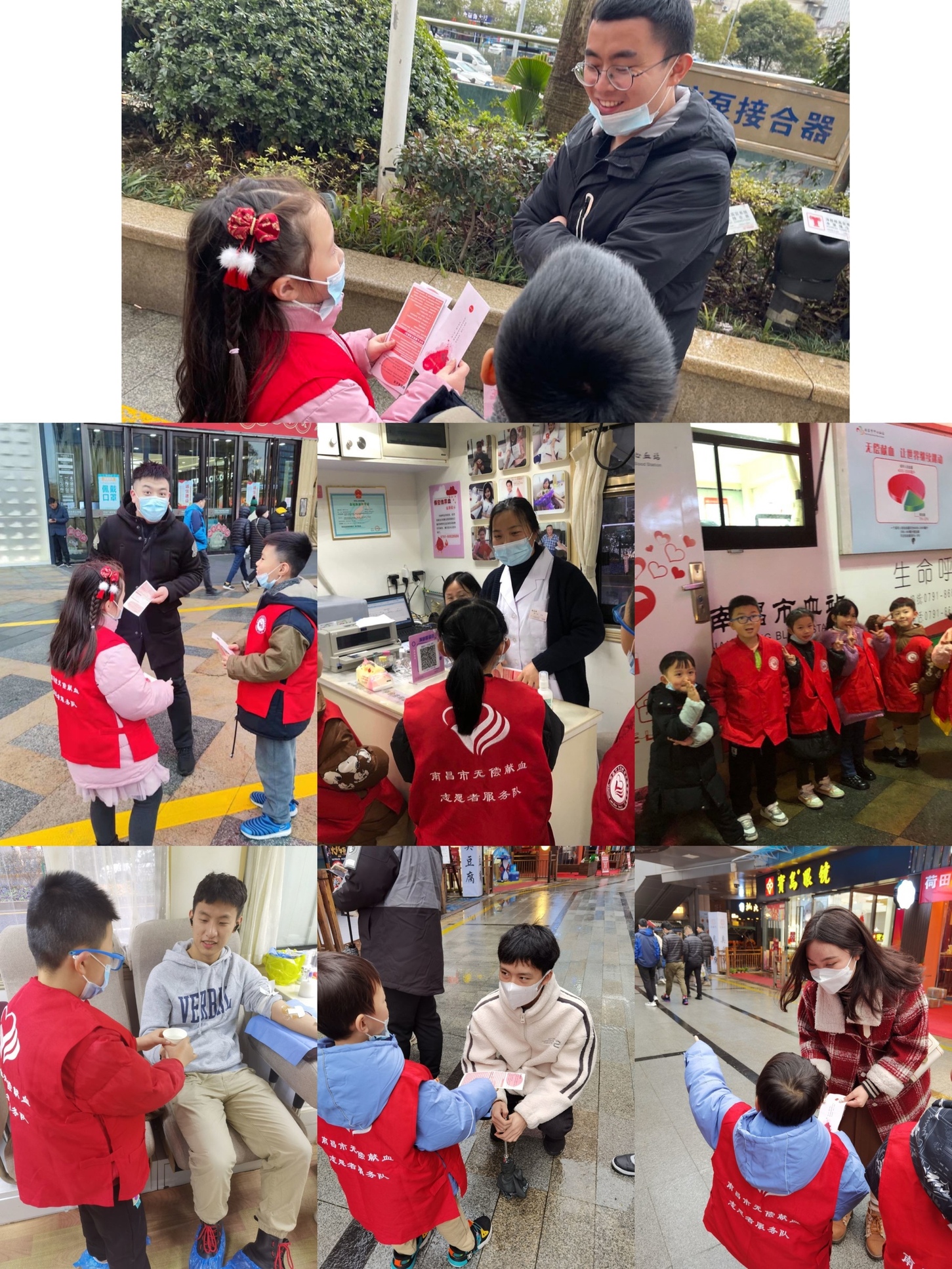 寒假期间,在我站红谷滩万达献血点上,迎来了一群有爱的老师、家长和同学们。他们就是来自南大附小第三分校一年级(7)班的同学们,他们在班主任周艳老师的带领下开展了一场小小志愿者体验活动。