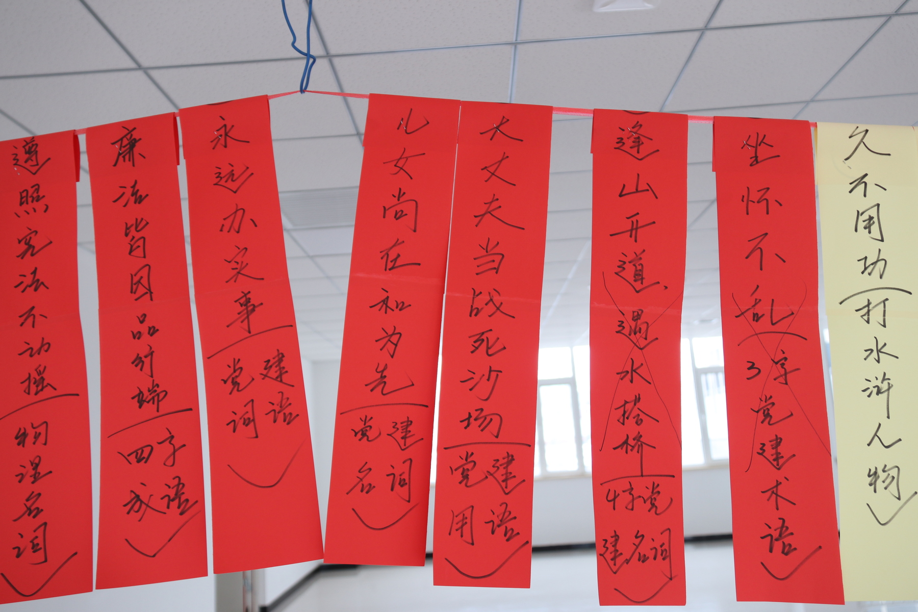 五彩缤纷的谜语纸条将活动现场装扮的异常喜庆,中心党员干部职工猜谜热情高涨,积极参加。本次猜谜活动,将中央八项规定精神、反对四风、国家法律法规、廉洁自律准则等内容融入谜语中,集知识性、趣味性、教育性于一体。
