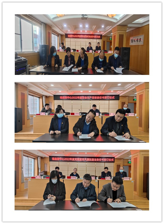 会上,中心领导同各科室、支部签订了2022年《采供血目标任务责任书》《安全生产目标责任书》《党建暨党风廉政建设责任书》。
