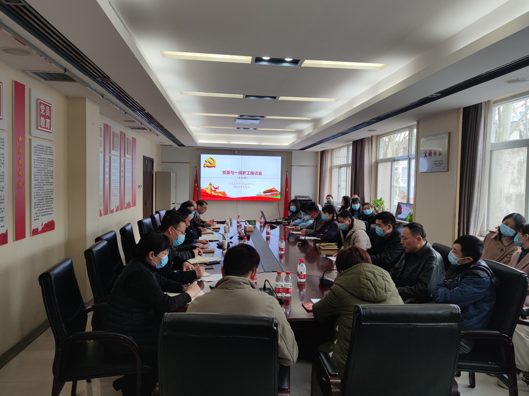为深入了解职工动态,凝聚群众智慧,共谋单位发展。2月22日下午,河南省红十字血液中心在三楼会议室召开党委与一线职工座谈会,党委书记岳立宏等中心领导与各支部推选的职工代表亲切座谈,听取意见建议。会议由党委副书记刘伟峰主持,各支部书记、各科室主要负责人参加了会议。