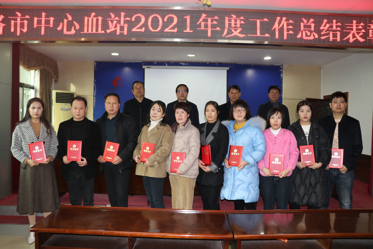 2021年,商洛市中心血站紧紧围绕市委、市政府以及市卫健委党组决策部署,坚持以习近平新时代中国特色社会主义思想为指导,深入学习贯彻习近平总书记来陕考察重要讲话重要指示精神,全站干部职工凝心聚力、迎难而上,采供血工作再创历史新高,全年共采集全血22555人次,39549单位,同比采血总量上升8.03 %,采血人次上升7.55%,有效保障了全市临床用血需求。工作中涌现出了一批团结协作、开拓进取的先进集体和爱岗敬业、务实担当的先进个人。为鼓励先进、树立榜样,大会对2019-2020年度全国血站系统表现突出的采血班组体采科采血一组,体采科、检验科、机采科等3个先进科室,魏平瑛、刘建红等10个先进工作者以及疫情防控先进个人刘磊、乡村振兴先进个人赵宇等予以表彰。