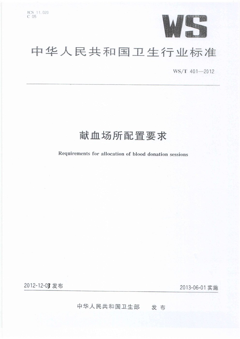 WS/T 401-2012《献血场所配置要求》