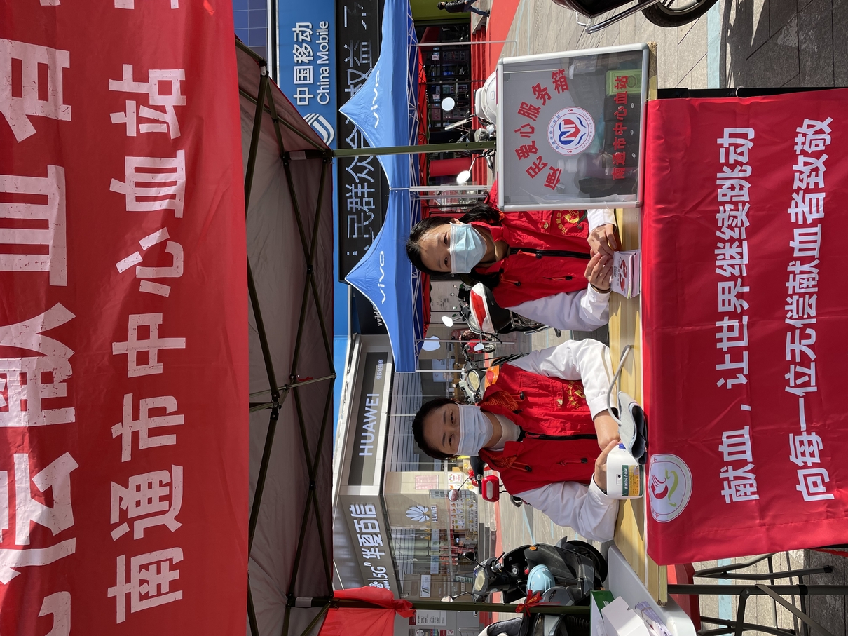 在南大街采血点,志愿者们早早来到现场,为市民测量血压,向广大市民群众发放无偿献血宣传手册,普及献血知识。
