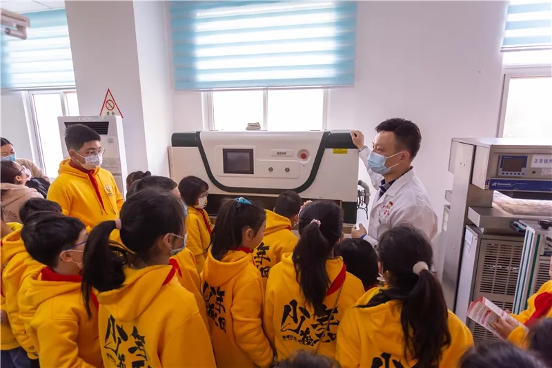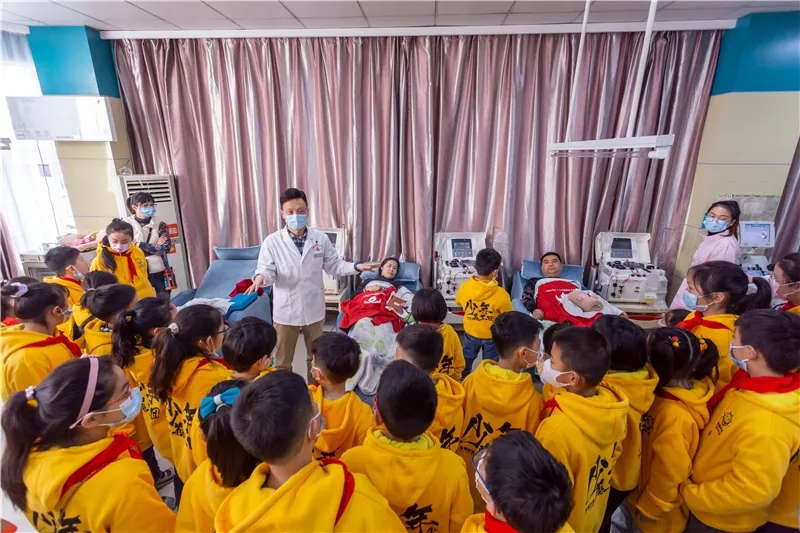 血站工作人员正在跟小朋友们讲解血液的采集过程