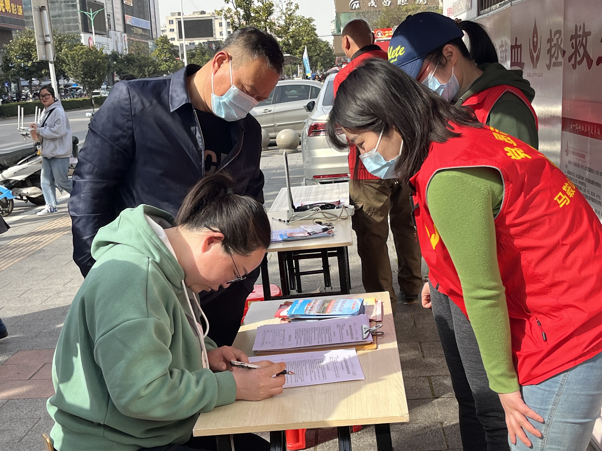 在活动现场,恰逢市爱心车队组织队员团体献血,那片汇集的红色在人群中分外耀眼。党员志愿者们以饱满的热情为车队的献血者们做好无偿献血知识宣传及献血前中后服务工作,同时为过往市民测量血压,发放传单,进行健康咨询和献血知识宣传等志愿服务活动。