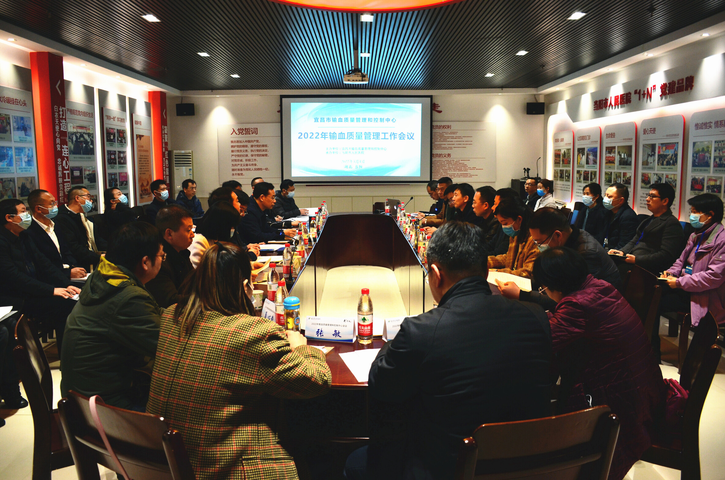 为加强全市临床输血质量管理控制能力,进一步推进宜昌输血质控高质量发展,3月4日,2022年宜昌市输血质量管理工作会议在当阳市人民医院顺利召开。宜昌市卫生健康委医政医管科科长史鸿鸣,当阳市人民医院党委书记夏骏、当阳市人民医院院长熊贵斌、当阳市人民医院副院长郑旭、当阳市人民医院副院长向黎、当阳市人民医院副院长陈玲莉出席会议,市输血质量管理和控制中心第二届全体成员及二级以上医疗机构输血科负责人参加本次会议。