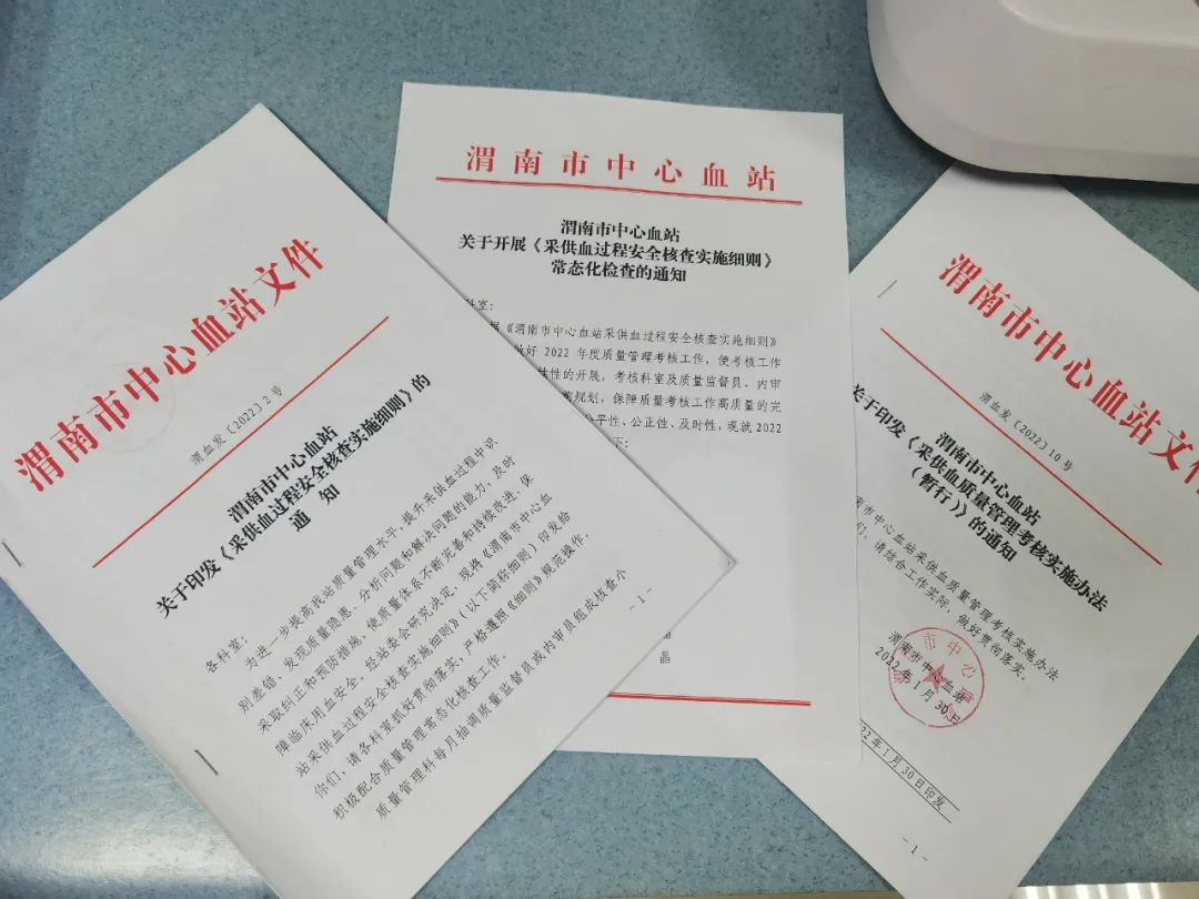 近年来,渭南市采供血量逐年新高,临床血液产品需求量增多,加之新发再发传染病疫情对采供血安全的严峻考验,血液调配区域联动的常态化启动,采供血业务流程的进一步优化,为持续推动血液安全全面质量管理工作的深入开展,进一步提高血站血液全面质量管理水平,提升采供血过程中潜在风险隐患识别的发现、差错的分析、问题的解决及纠正、预防措施的实施等综合能力,使血站质量管理体系持续有效改进,血站服务体系不断完善,保障临床用血安全,渭南市中心血站出台了《渭南市中心血站采供血过程安全核查实施细则》。