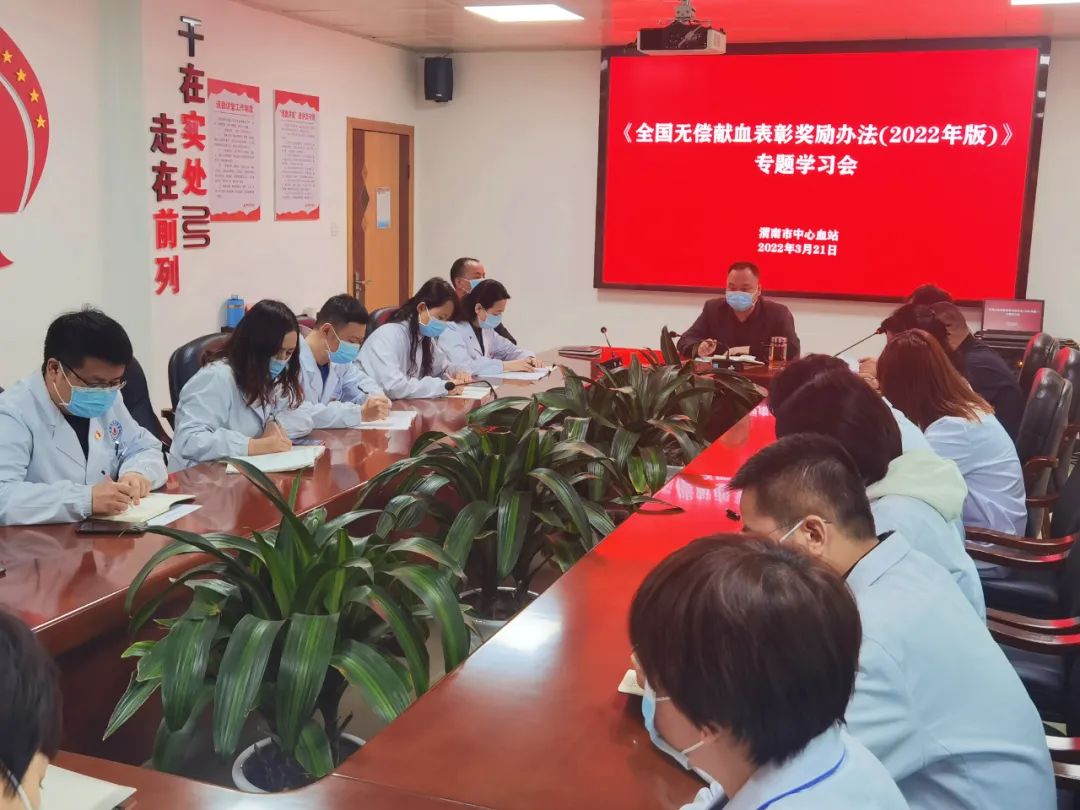 为全面贯彻落实国卫医发【2022】8号文件精神要求,进一步做好无偿献血表彰奖励工作,鼓励公民积极参与无偿献血,营造无偿献血良好社会氛围,推动无偿献血工作高质量发展,3月21日,渭南市中心血站组织学习《全国无偿献血表彰奖励办法(2022年版)》。副站长吴剑主持并解读了相关内容,站领导及科级以上干部参加了会议。