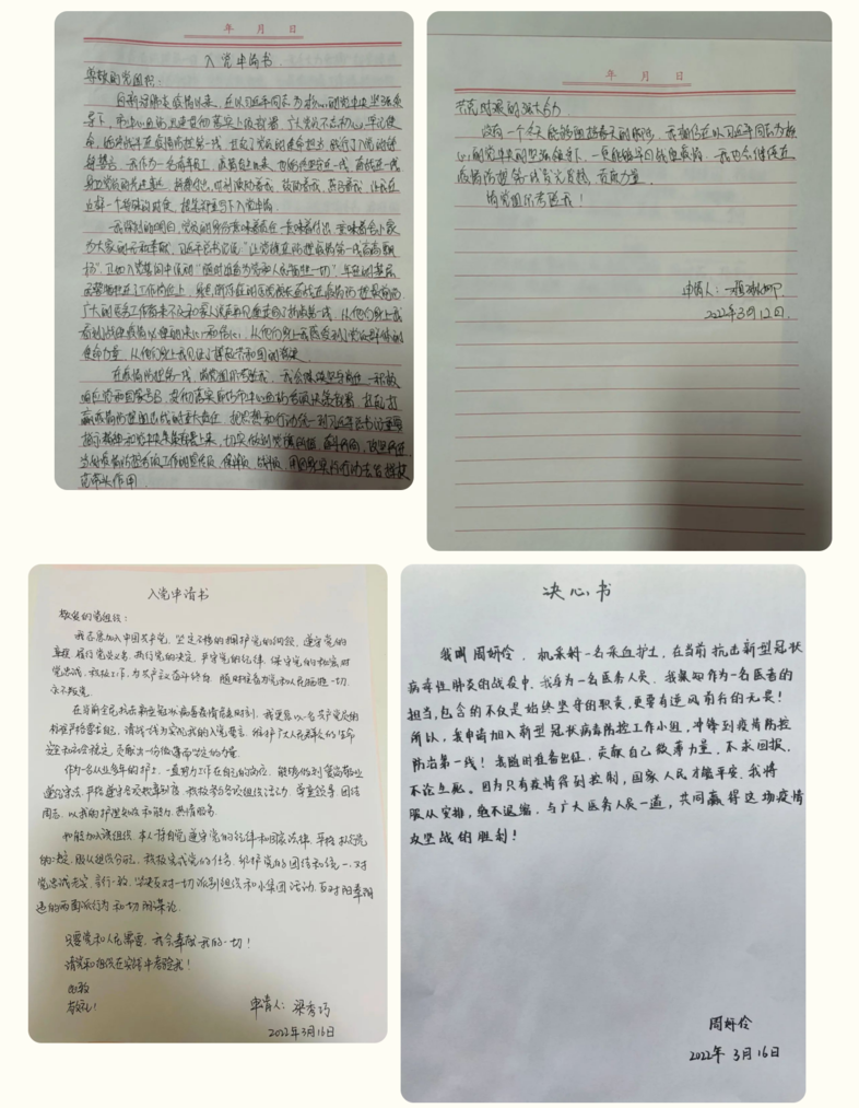 随后,邢帅、冯裕清、梅海波、付建国等40人纷纷递交入党申请书,申请加入党组织,决心“请战一线”,以一名共产党员的标准接受组织考察,为战“疫”作出自己的贡献。