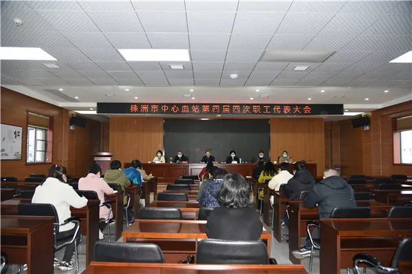 3月24日,株洲市中心血站第四届四次职工代表大会在七楼学术报告厅隆重召开,21名职工代表参加会议,市卫健委党委委员、副主任李晓兵到会指导。