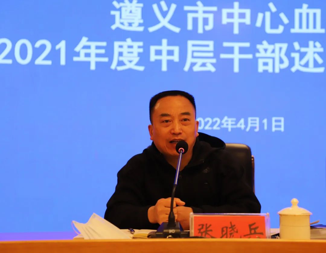 2022年4月1日,遵义市中心血站召开2021年度中层干部述职述廉会议,市卫健局正县级干部张晓兵出席会议并讲话,站领导班子成员、各科室负责人、职工代表参加会议,会议由副站长付友恒主持。