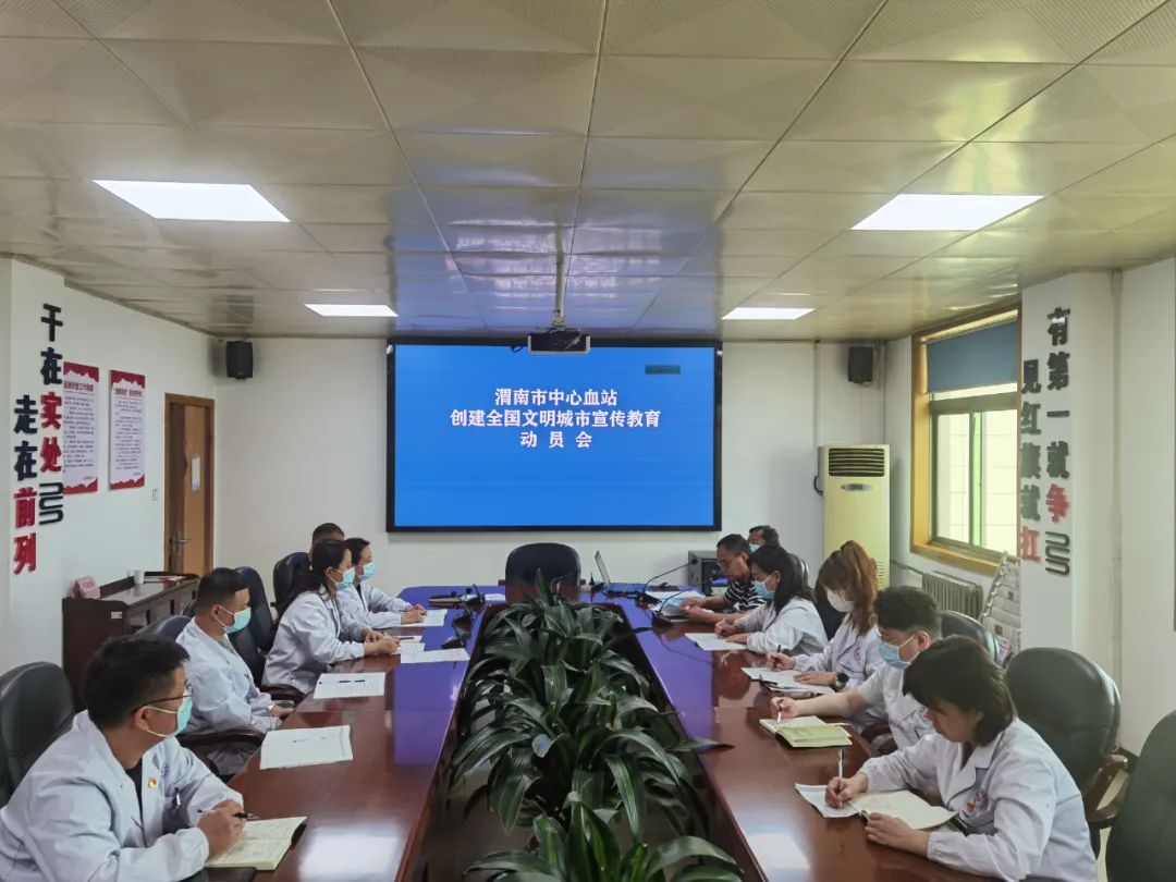 4月11日上午,渭南市中心血站召开了创建全国文明城市宣传教育动员会,安排部署血站创建宣传教育活动,以实际行动助力全市创建工作。会议由副站长吴剑主持,领导班子及各科室负责人参加了会议。