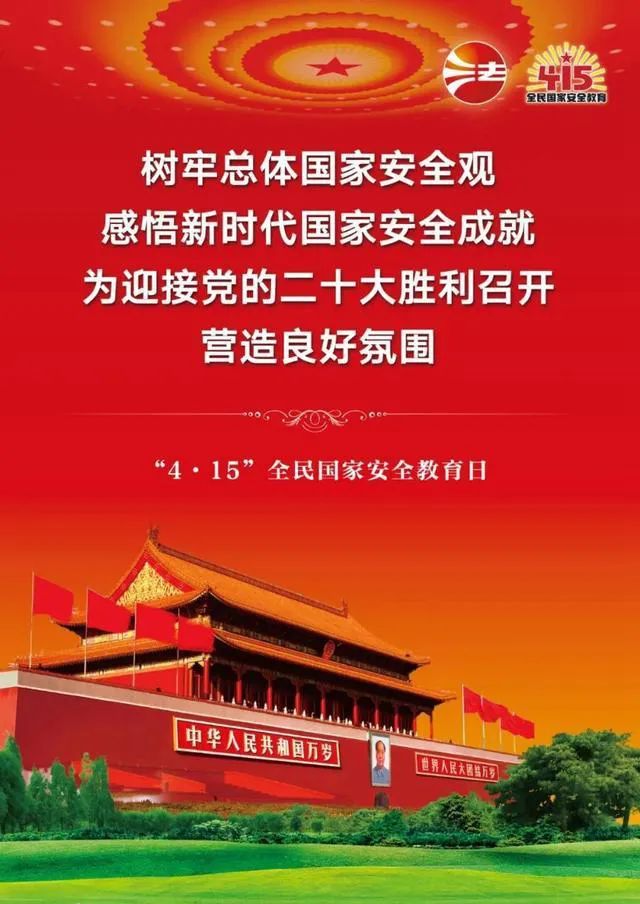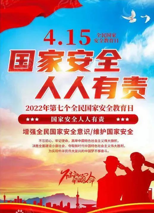 2022年4月15日是第七个全民国家安全教育日,主题是“树牢总体国家安全观,感悟新时代国家安全成就,为迎接党的二十大胜利召开营造良好氛围”。