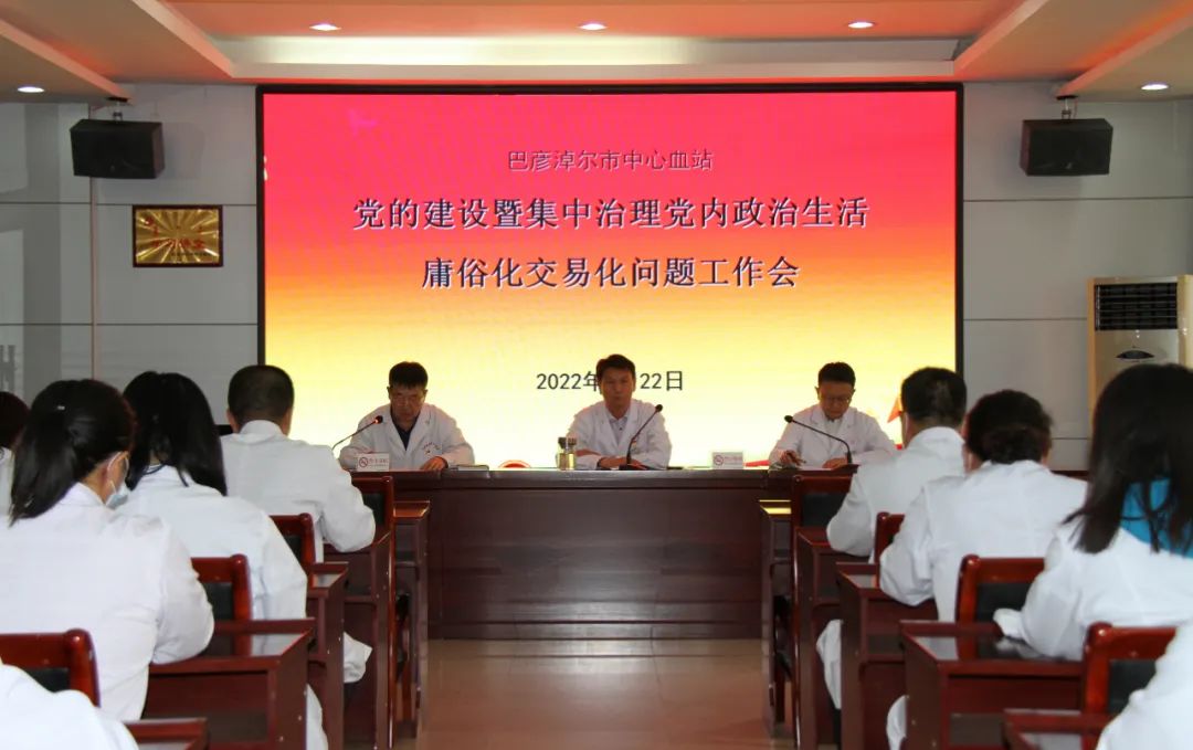 4月22日下午,内蒙古巴彦淖尔市中心血站召开党的建设暨集中治理党内政治生活庸俗化交易化问题工作部署会,就开展党的建设和集中治理党内政治生活庸俗化交易化问题作出安排部署。站领导班子成员和全站干部职工参加了此次会议。